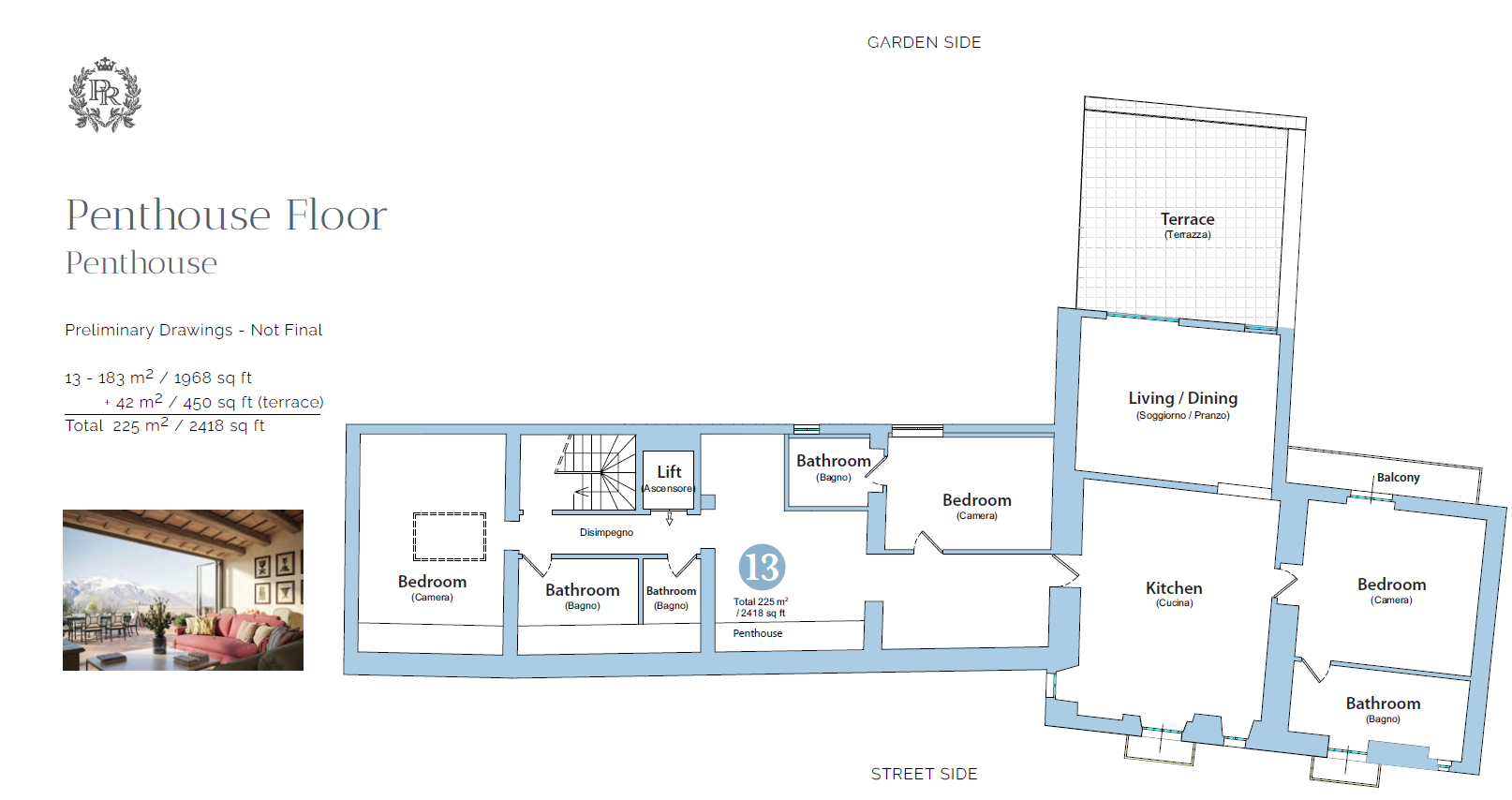 Located at the top of Palazzo Ricci, Le Penthouse embodies the height of refinement and exclusivity. Boasting spectacular panoramic views of the verdant hills of Abruzzo, this exceptional residence combines the prestige of an 18th-century palace with contemporary elegance and comfort. With its generous volumes, high-end finishes and sophisticated atmosphere, Le Penthouse is a true invitation to an unparalleled art of living. Its owners enjoy privileged access to the exceptional services of Palazzo Ricci, including a spa, swimming pool, state-of-the-art gym, private lounge and a rooftop terrace with breathtaking views. Every detail has been designed to offer a unique living experience, where history, culture and modernity blend harmoniously. More than a place to live, Le Penthouse at Palazzo Ricci is a prestigious address, a statement of elegance and exclusivity. Seize this rare opportunity and write your own chapter in the history of this exceptional palace